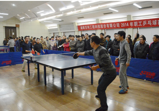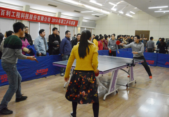 為豐富公司員工文化生活,增強員工體質,發揚團結、進取的體育精神,由百利科技工會主辦,土建室分會承辦的“百利科技2014年職工乒乓球賽”于12月8日至19日在公司兵乓球活動中心舉行。