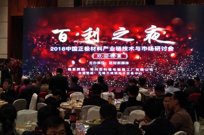 “2018中國國際正極材料產業鏈技術與市場研討會”于2018年3月23至24日在常州召開,常州百利鋰電作為會議主要贊助單位,與行業內各界精英人士圍繞新能源產業,針對正極材料用鋰、鈷資源、前驅體、正極材料、鋰電設備及回收全產業鏈的現狀和未來發展趨勢進行了深入交流。