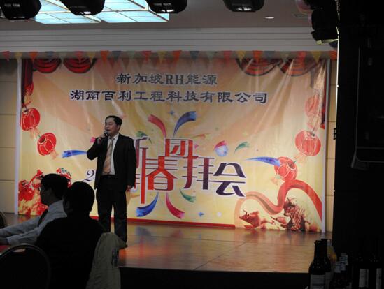 團拜會 在歡快的歌舞聲中拉開了序幕,“吉祥謠”、“好運來”、“和諧中國”等一個個精彩節目贏得在場員工們陣陣掌聲。會上公司總裁、黨委書記肖立明和新加坡RH 能源集團執行董事王立言分別致新春賀辭和發表感言。我們堅信在新的一年里,在公司董事會、經營班子領導下,在全體員工恪盡職守、辛勤工作下,百利的明天會 更美好!