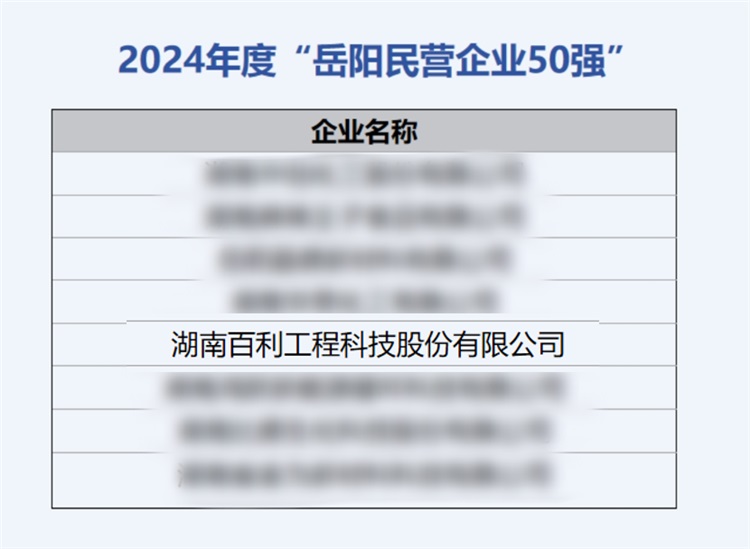 近日,岳陽市工商業聯合會公示2024年度“岳陽民營企業50強”名單。百利科技憑借其深厚的產業積淀與綜合實力榮譽上榜。